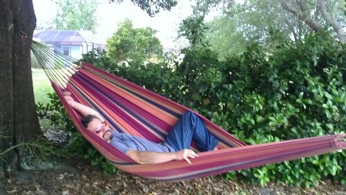 After a few months of looking, thinking, and trying to decide how to set up the hammock without two trees, I finally decided on a method…. One tree!