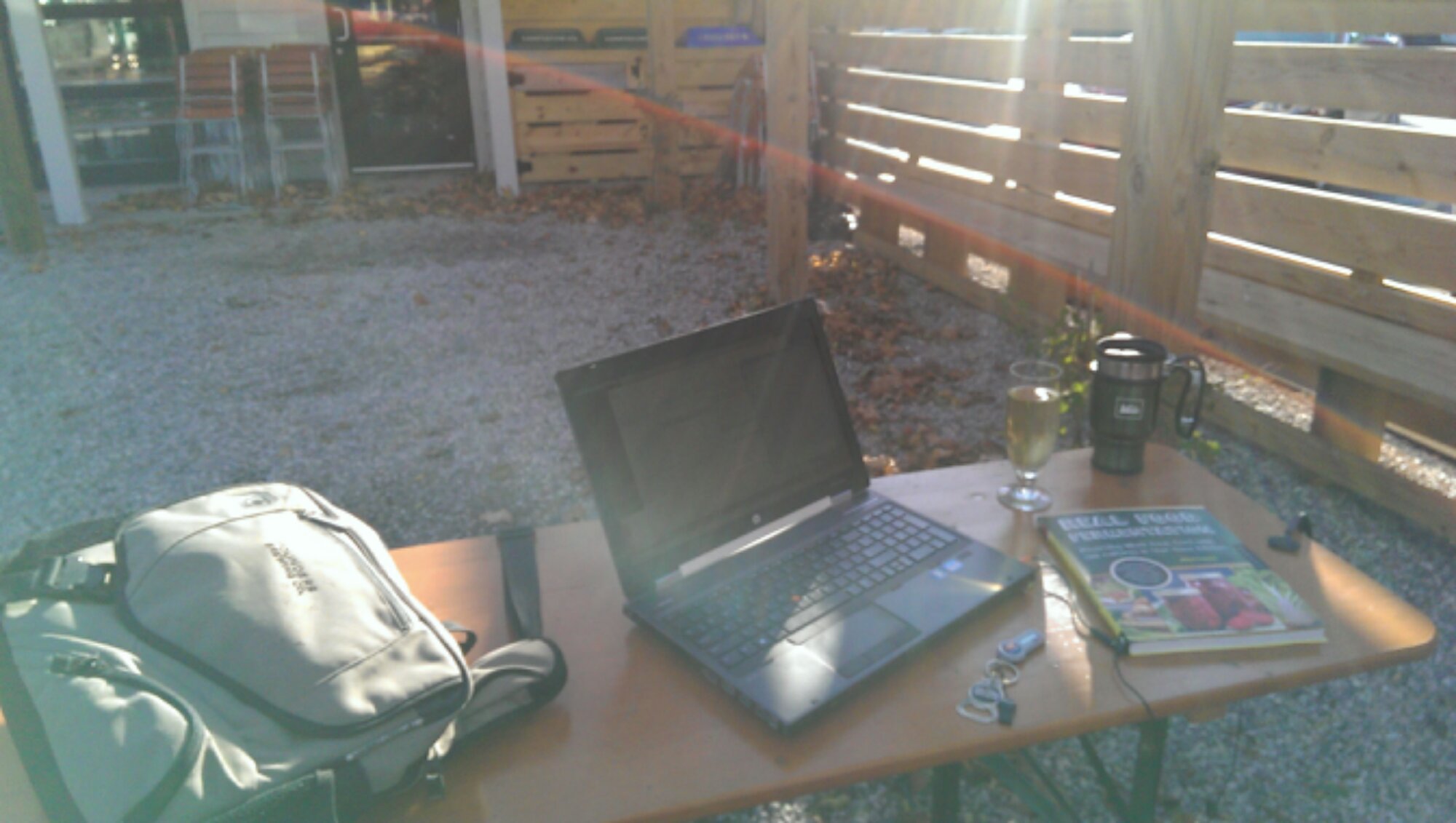 Friday afternoon office Published by B on November 15, 2013 | Leave a response A little falafel, a cider, crisp November air, and sunshine at Little Fleet to wind out the workweek…